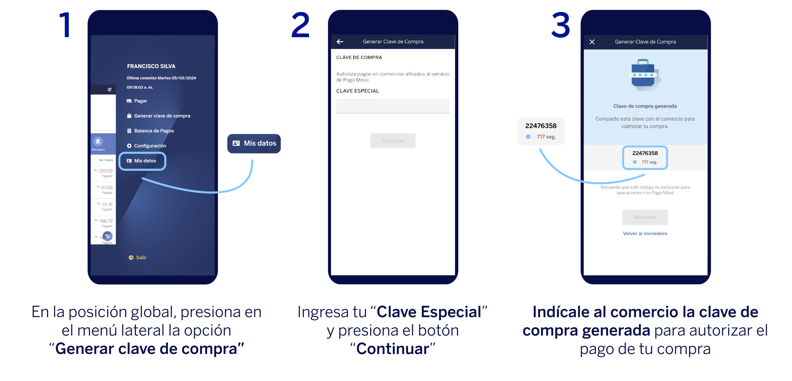 - Autorización de tus pagos a través de la "clave de compra" que te solicitará el comercio (C2P).