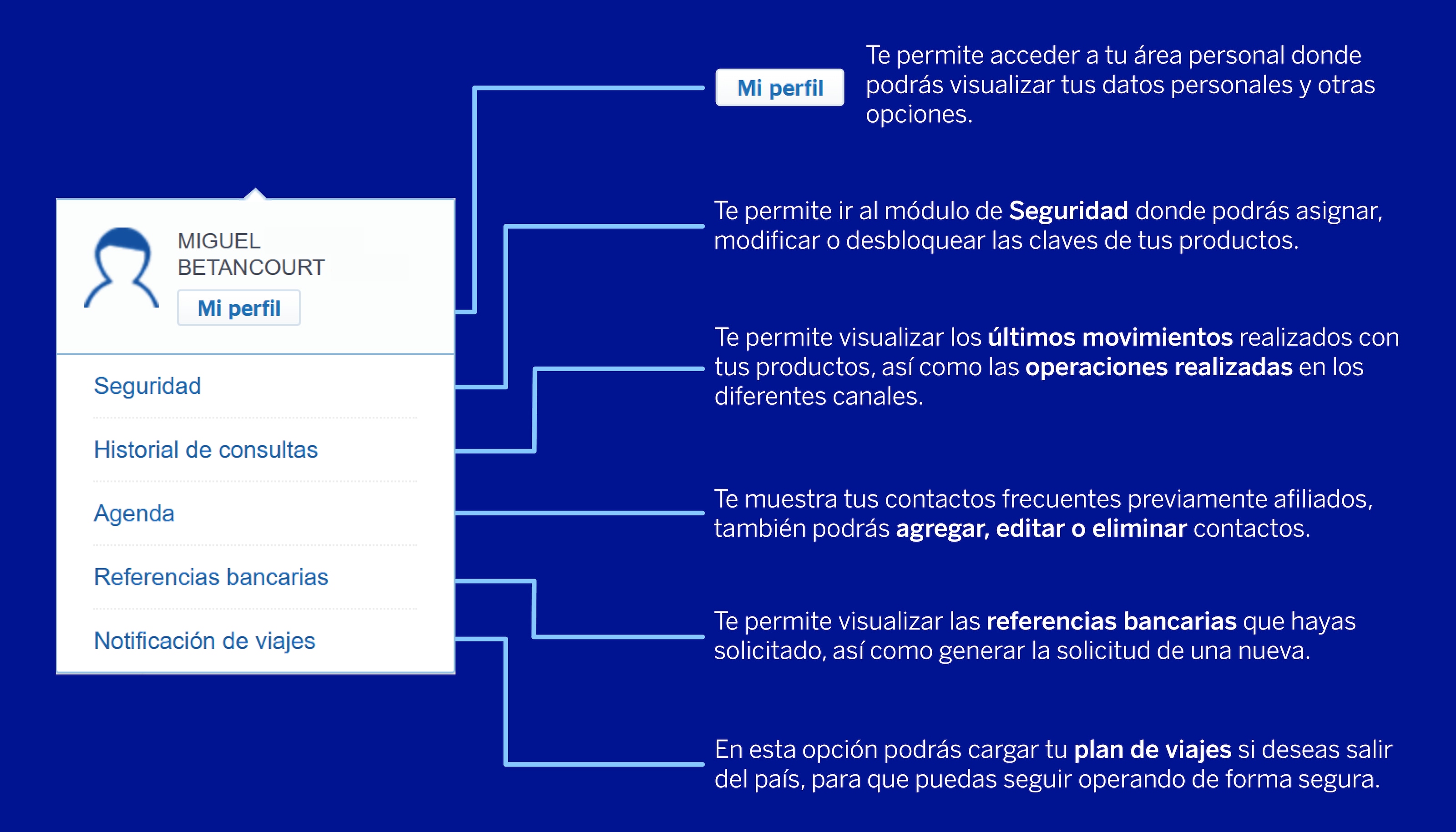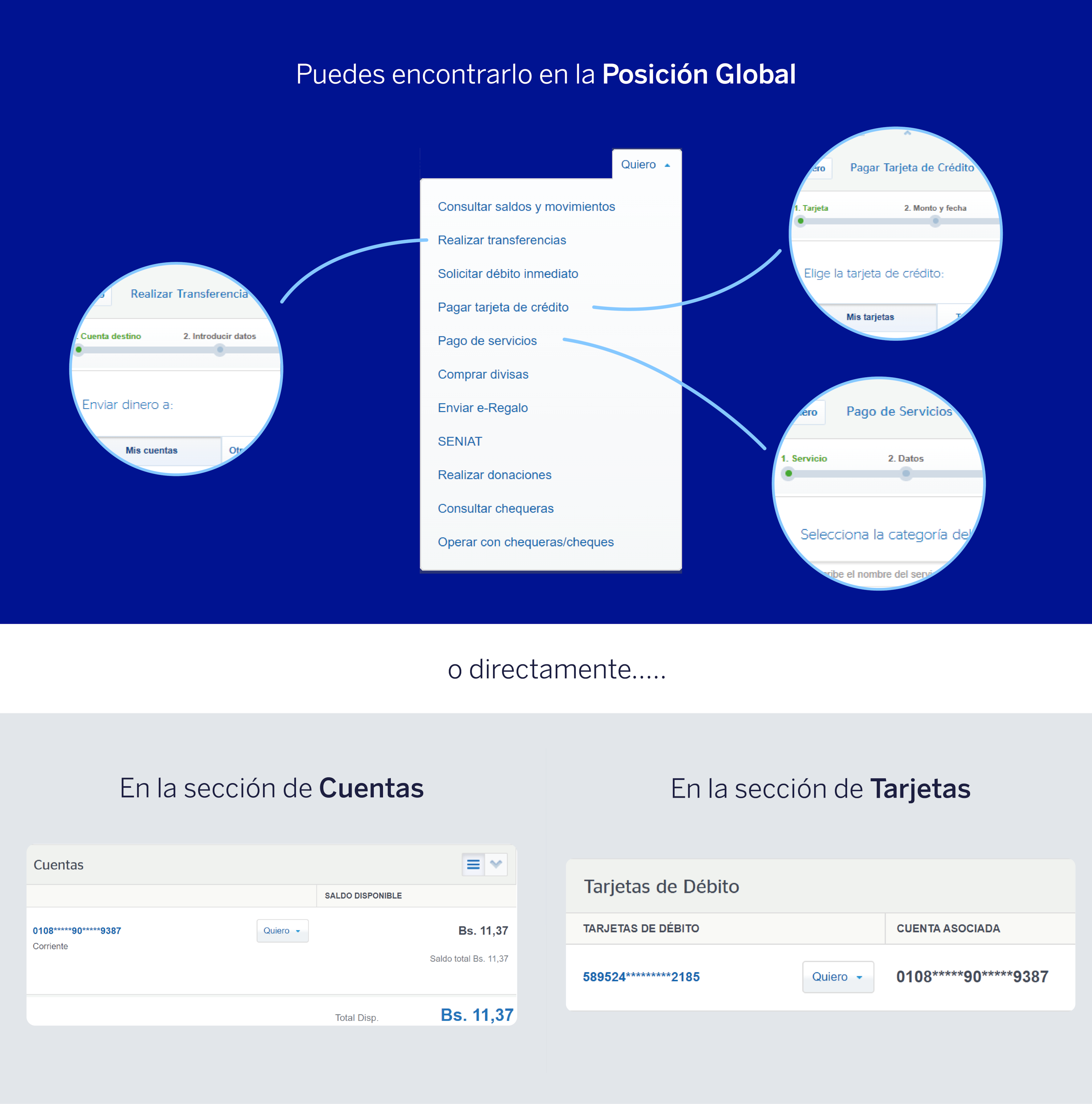 Realiza todas las operaciones a través de nuestro menú desplegable "Quiero"