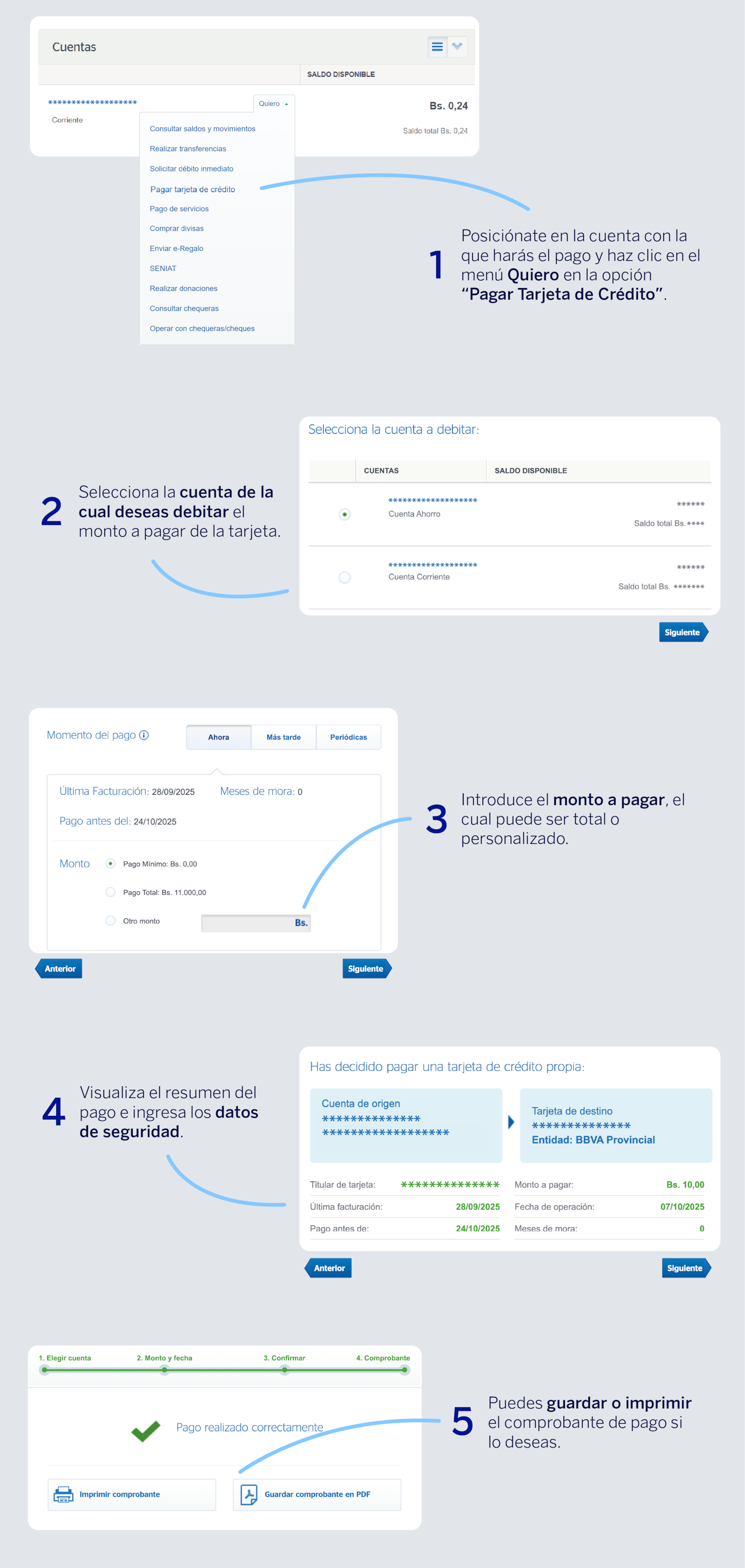 Selecciona la Tarjeta de Crédito a pagar, despliega el Menú Quiero y haz clic en “Pagar esta Tarjeta”.