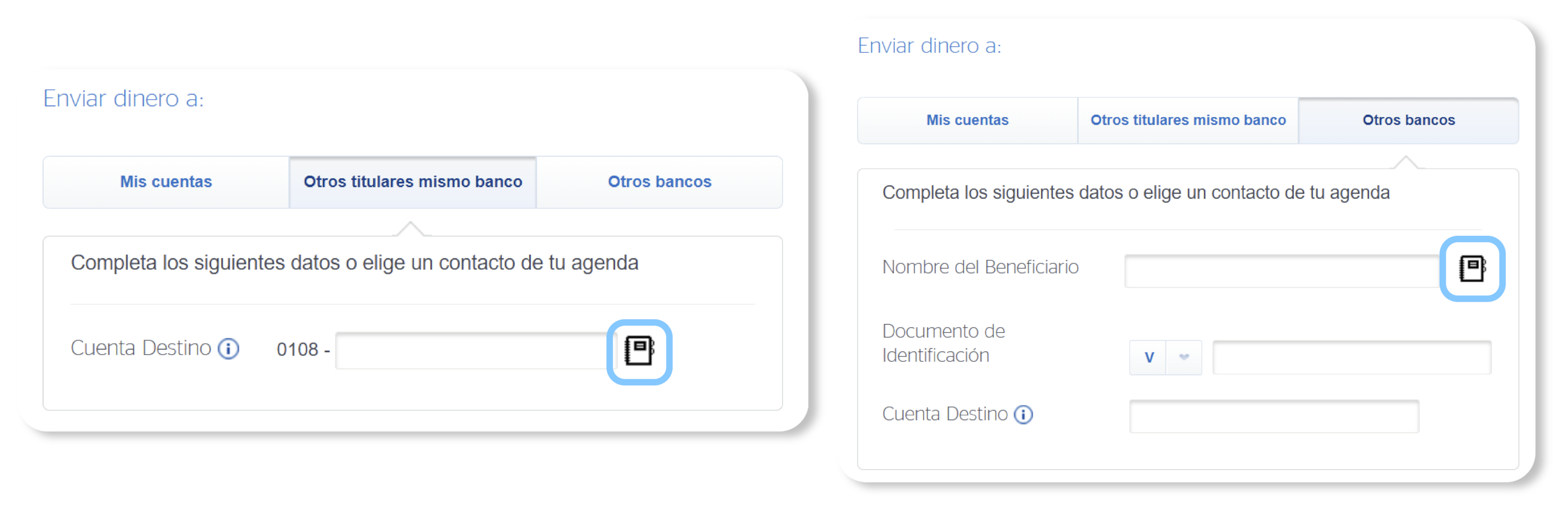 Si la transferencia es a otro titular del mismo banco (Terceros):